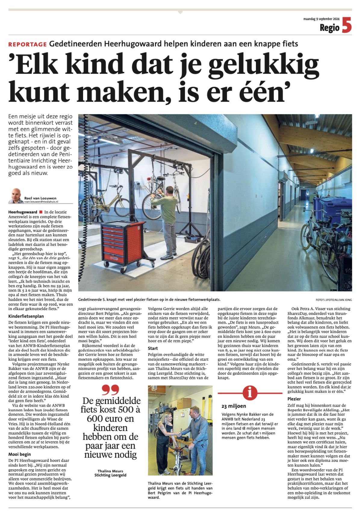 De link naar het hele artikel: https://www.dji.nl/actueel/nieuws/2024/09/06/gedetineerden-pi-heerhugowaard-herstellen-fietsen-voor-kinderen